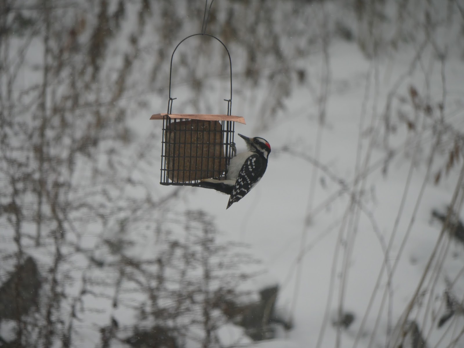 It had snowed all day down at Long Point. Before I left, I had scattered birdseed, and the garden had been full of birds in my absence.